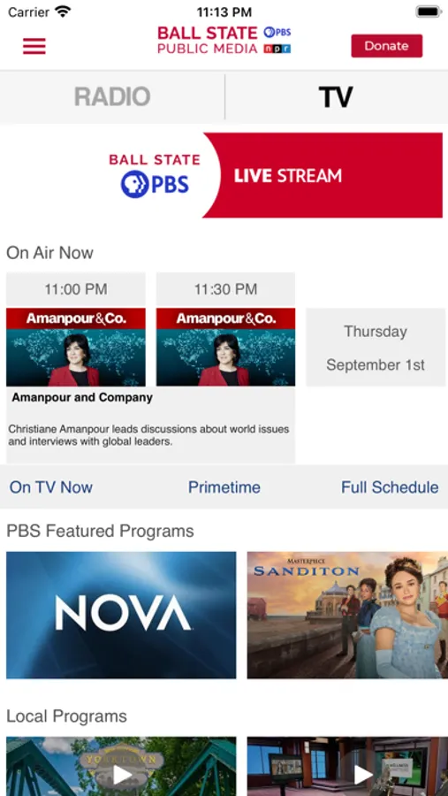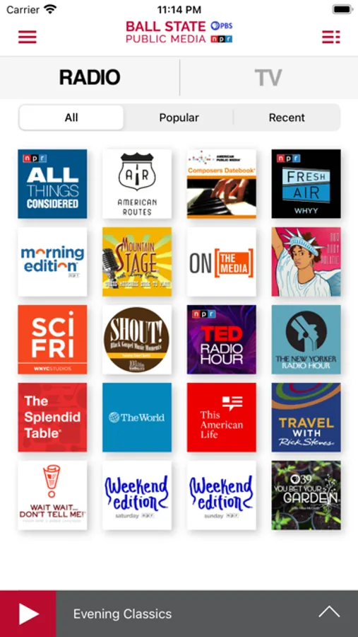 The Ball State Public Media App allows you to watch and listen to all of Ball State PBS and Indiana Public Radio programs, Radio and TV!