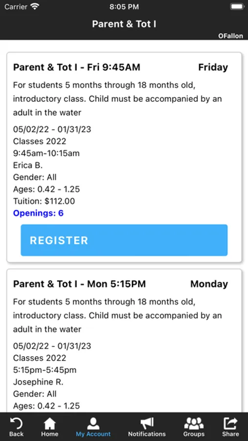 The Barron Swim app allows you to manage your account with ease, register for classes, and special events. You'll also receive important notifications about class changes, closings, registration openings, special announcements, and upcoming events.