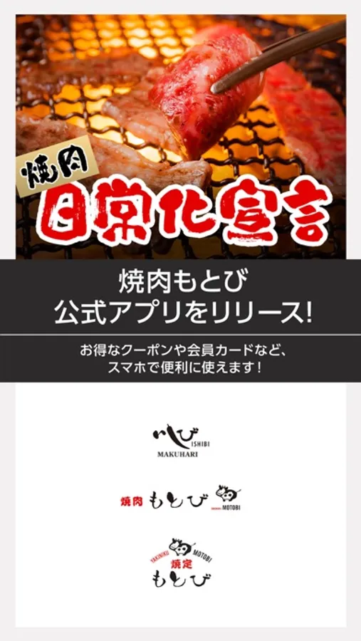 「焼肉もとび」「焼定もとび」の公式アプリへようこそ!