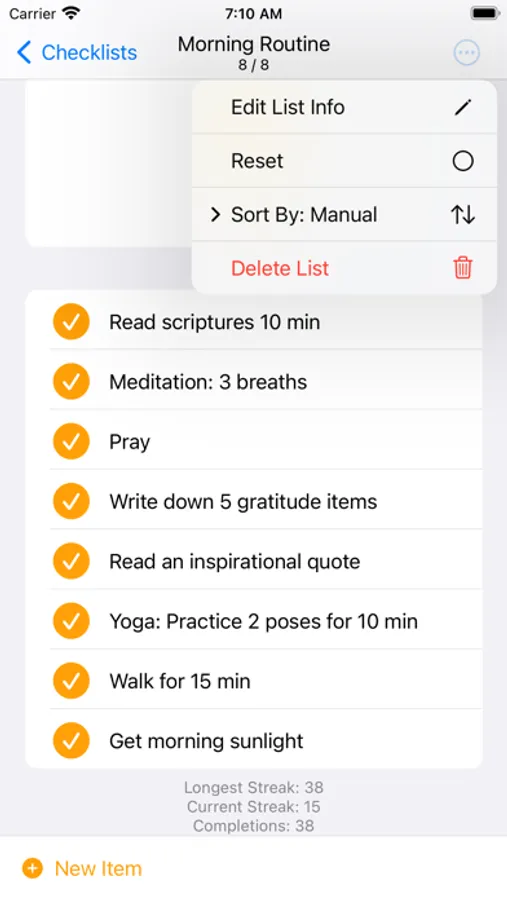 One, Two solves these problems by providing an easy place to store repeatable lists. Reset lists daily, or when you choose.