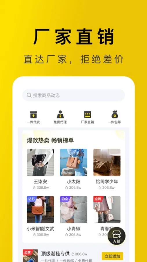 一手货源一件代发,微商货源不用愁。各类好货一键代理,和商家直接沟通,品质保障更放心。