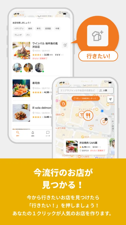 3.気になるお店を探して「行きたい」を設定したり、みんなが「行きたい」を設定しているお店をチェックすることができます。