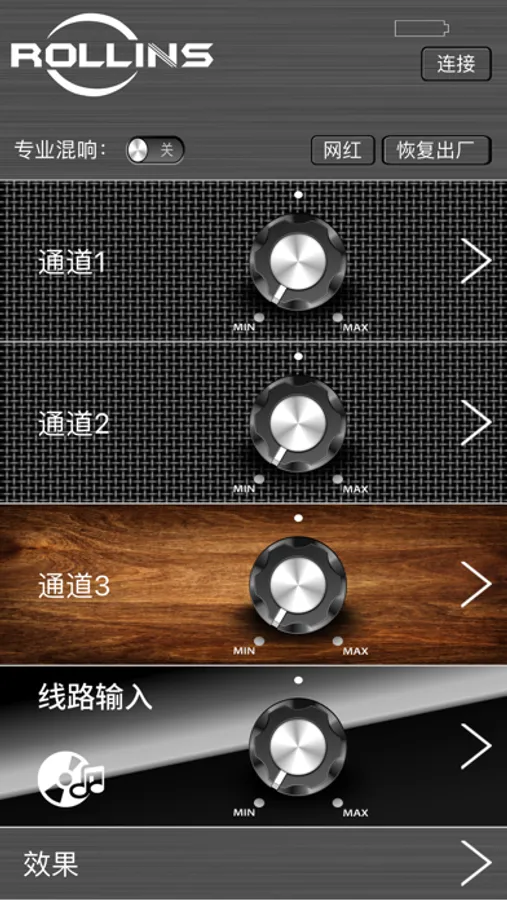 金色天籁,声声似金,这是一个通过蓝牙连接控制音响的APP,通过这个APP,你可以更改吉他、话筒和音乐通道的音量等功能,包括切换各个模式、录音、更改各种效果等功能。没有做不到,只有想不到。