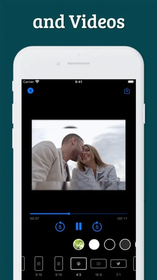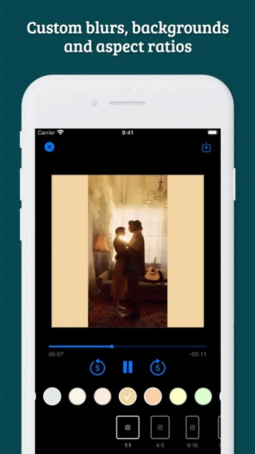 Use blur backgrounds, colors and choose your aspect ratio with ease.