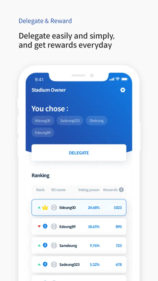 - You can easily delegate your voting rights by analyzing Owners’ ranking and information.