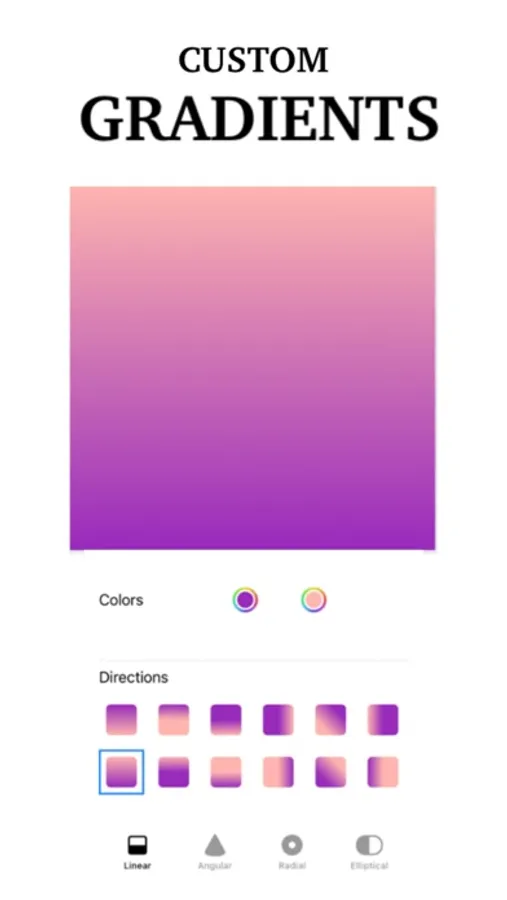 CUSTTOM BACKGROUND GRADIENT COLORS - In addition to and solid colors to choose from, you can also make a variety of gradient colors as you wish to make your photos look even better.