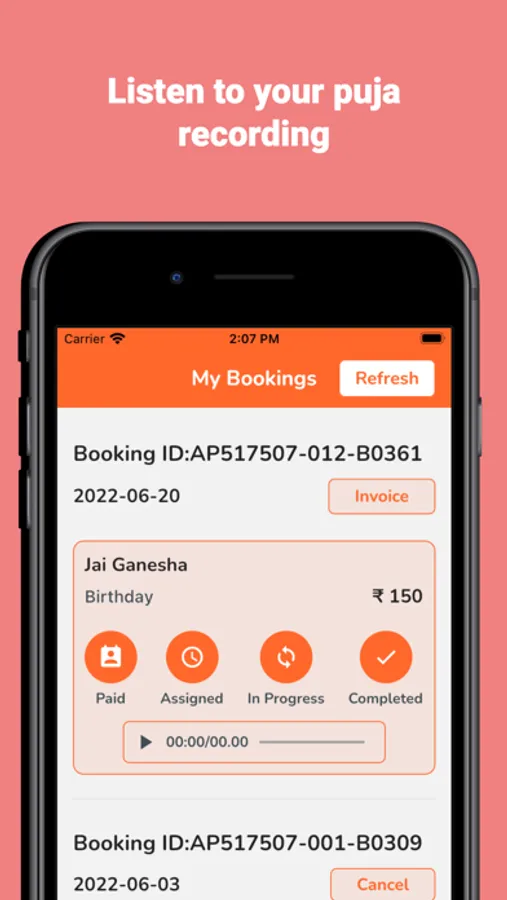 A devotee/Customer can book a puja service especially Archana from the list of temples in the app especially on the occasion like birthday’s, anniversaries and also can gift a archana for their loved one’s !