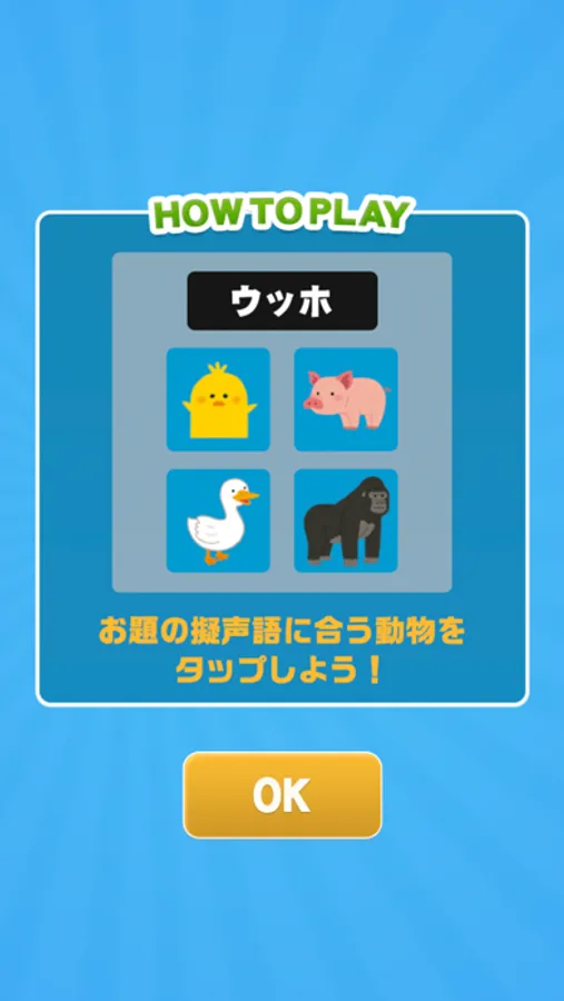 「動物の音クイズ!」はそんな動物たちの擬音語・擬声語のクイズゲームです!