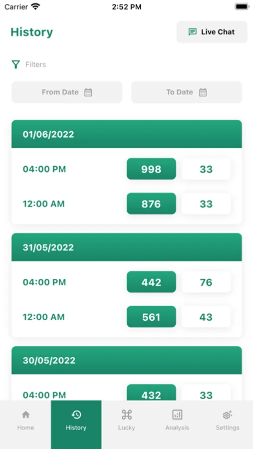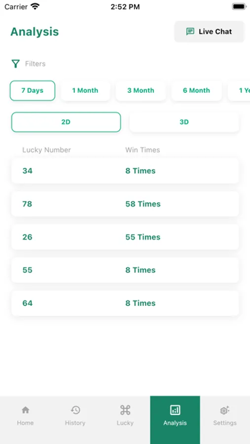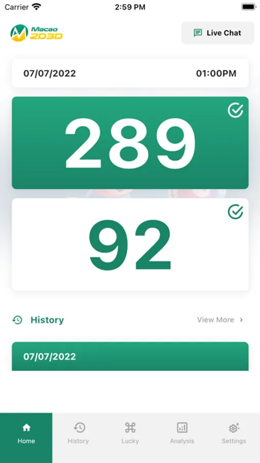In this Macao 2D3D app, there is a lot of useful buttons Menu. They are 2D3D Home, 2D3D History, 2D3D Lucky number and Analysis. 2D3D history tab, you can find the results by date and time. It is very useful because you can find whatever you want in this 2D3D history.
