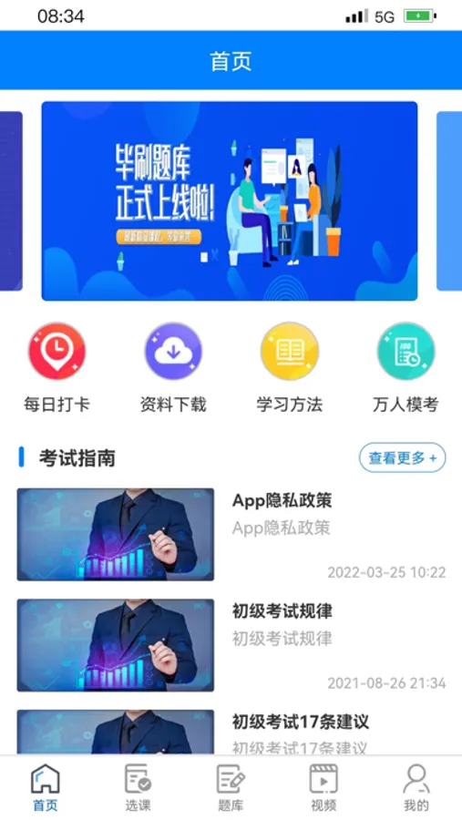 [主要功能]题库:有章节练习、历年真题,全真考试、考前押题,我的错题、我的收藏,随机检测,做题笔记等功能。设计风格简单明了,利于考生快速上手。