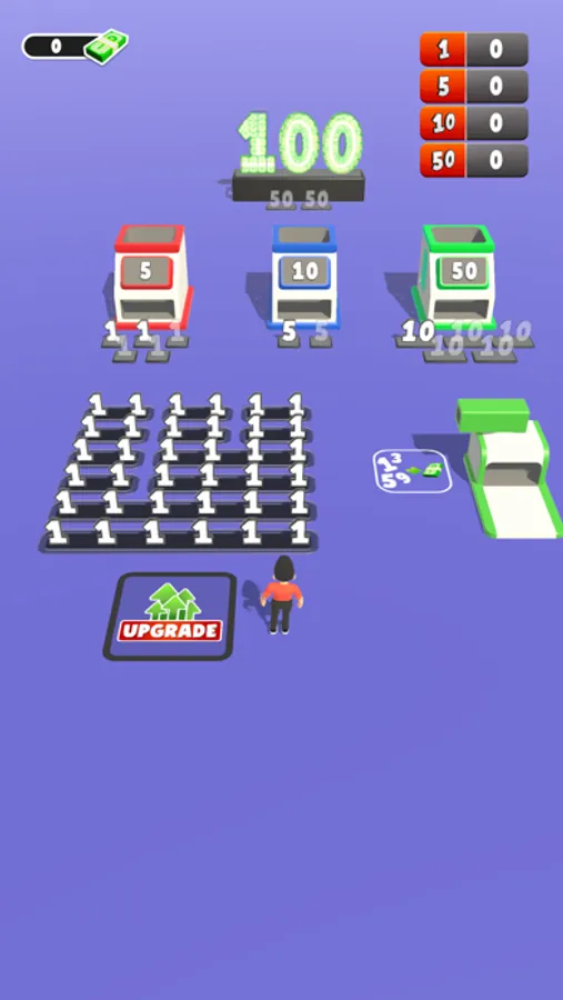 Collect numbers with your character. Merge them by using number machines to obtain bigger numbers. Obtain the biggest number to complete the level!