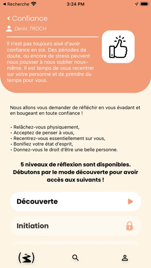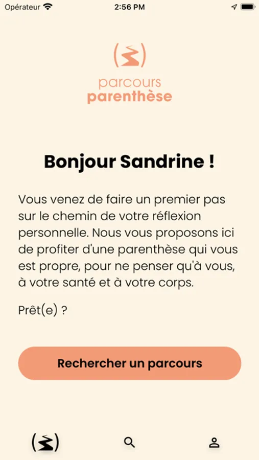 Parcours parenthèse est une application dédiée à l’accompagnement des personnes dans leur quête du bien-être et d’une aide au développement de leur propre chemin de réflexion. Elle propose des parcours extérieurs en alliant la marche et la réflexion autour de thématiques (confiance en soi, motivation, prise de décision, cohésion d’équipe, l’engagement, le changement… ). Plus de 50 thématiques déclinées en 5 niveaux au travers d’un concept et des outils autour du bon sens.