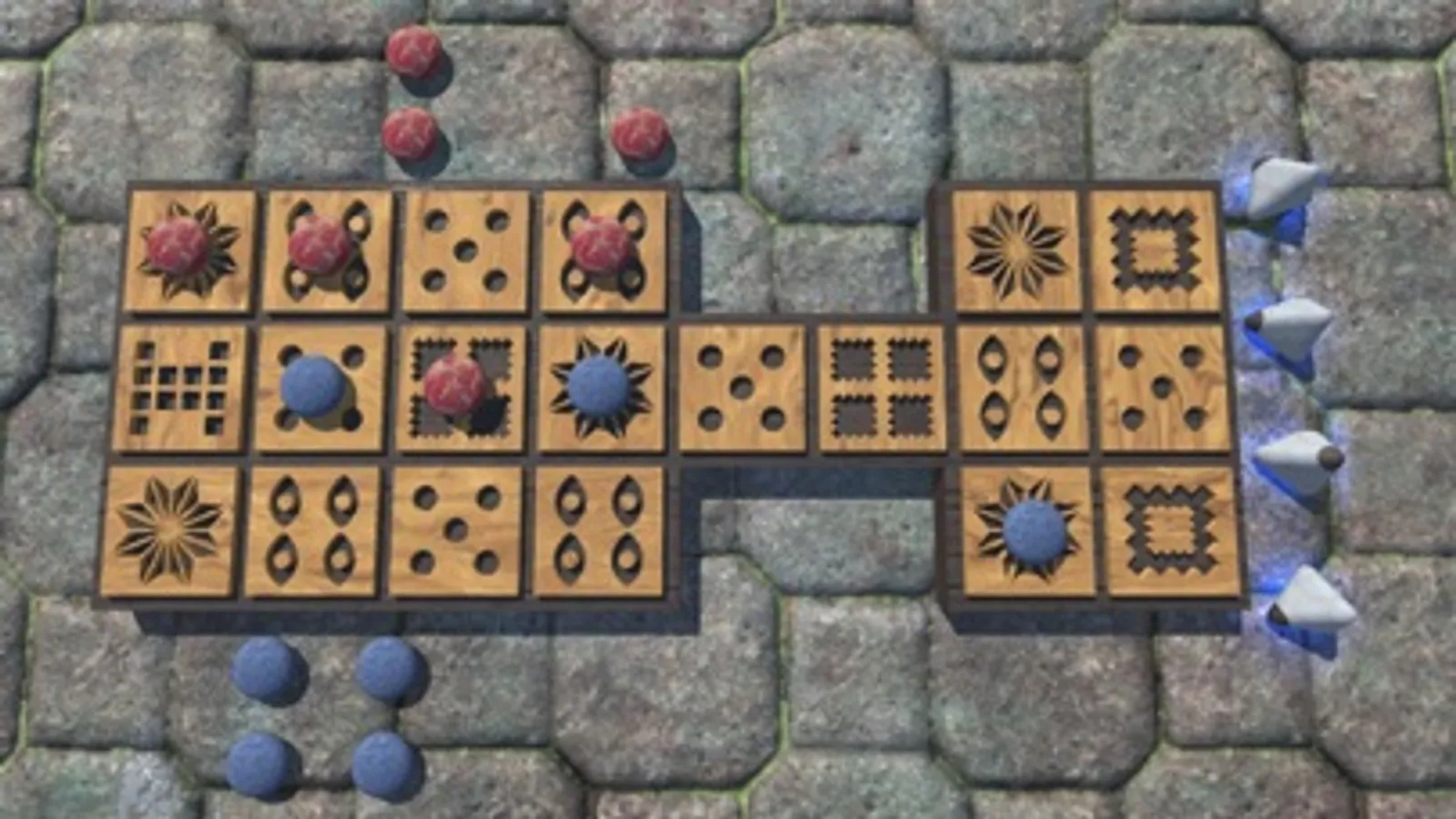 The Royal Ur 3D is a racing game - the aim is to get all 7 pieces around the board to the finish point first.