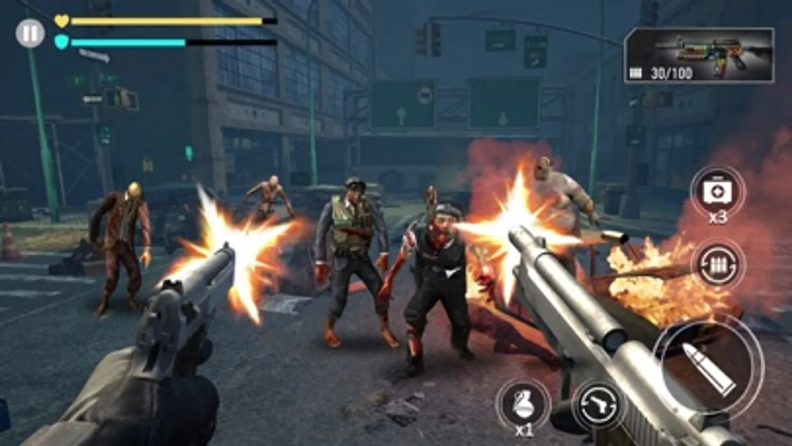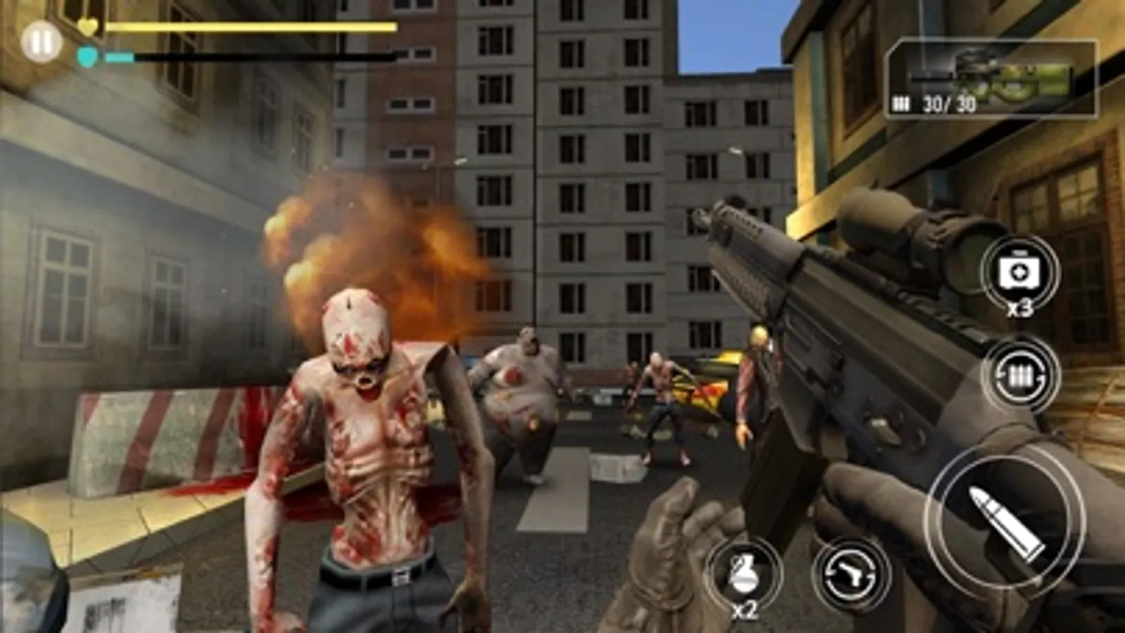 You will randomly appear in any corner of the city, zombies will run towards you continuously, slide the left side of the screen to move the crosshair to aim, click the shooting button on the right to shoot, you can also use grenades, medical boxes and other props, the bullets are insufficient You can reload or switch secondary weapons to shoot.