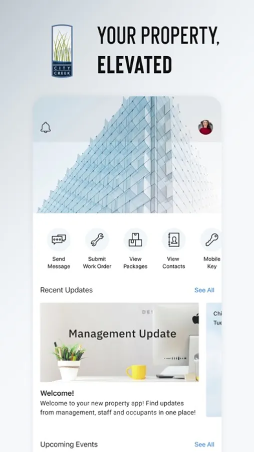 The City Creek Tenant App provides building tenants with direct access and first class service. With the City Creek App, tenants and property staff can interact with their building all from the palm of their hand.