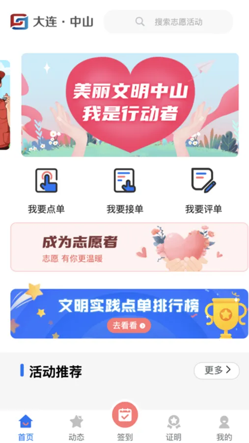 “志愿中山”是按照大连市关于“新时代文明实践活动”工作要求开发的中山区志愿服务官方APP。提供志愿者实名注册、参与志愿服务、志愿者服务证办理等功能,全面实现“群众点单-志愿者接单-新时代文明实践中心(所、站)派单-群众评单”的文明实践线上工作流程。欢迎您在使用过程中提出宝贵意见和建议。