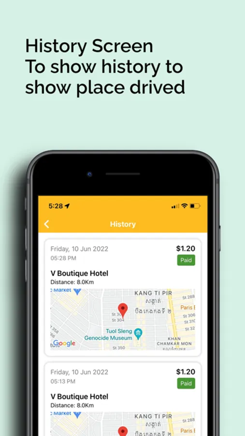 6. Driver press finish button on the arrival spot, money transferred to driver