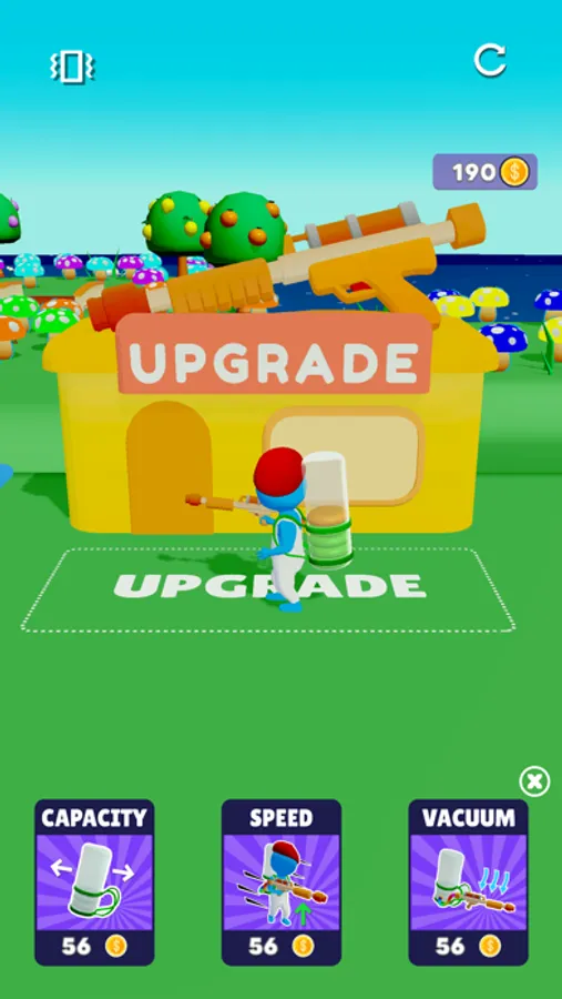 If you increase your capacity, speed and vacuum power, you will do fast work. And you can quickly paint your city in monochrome.