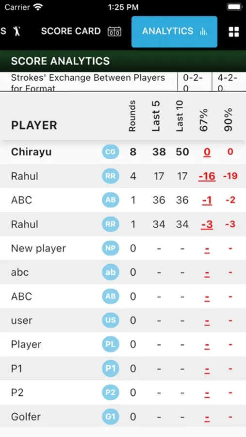 • On the analytics page, you shall get the H’cap in relation to your performance. Over time you shall get the regular H’cap of players in one’s closed group.