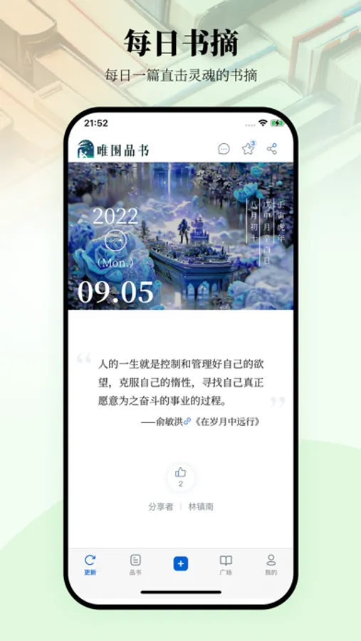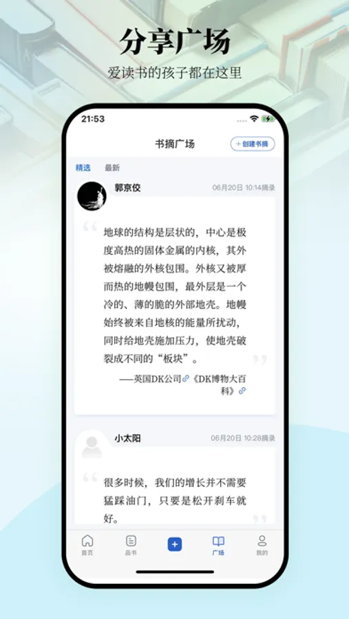 提供众多精美卡片背景图、热门书摘、卡片模板,可自定义编辑喜欢的书摘卡片样式并分享。"
