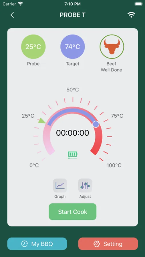 3. Time monitoring function, when the PROBE T APP cooking setting is completed, click start, it will automatically enter the timing state, and calculate the total time taken from the current temperature to the set temperature alarm.