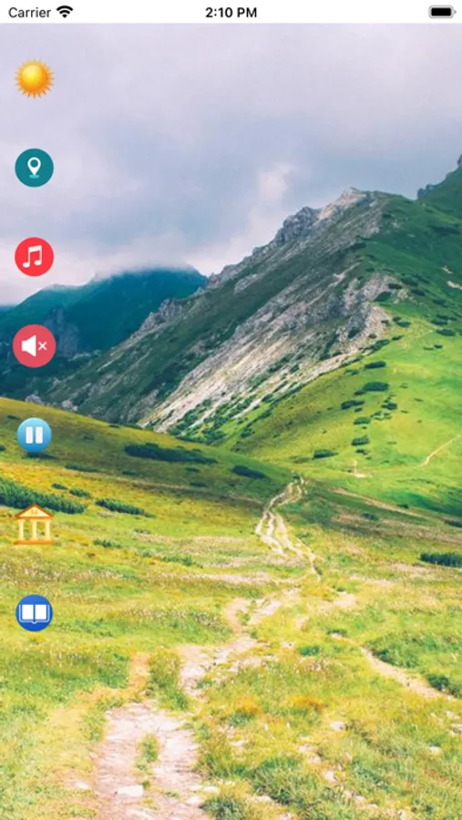- Red button "Notes" to change music or sounds (birdsong, forest, surf, murmur of water)