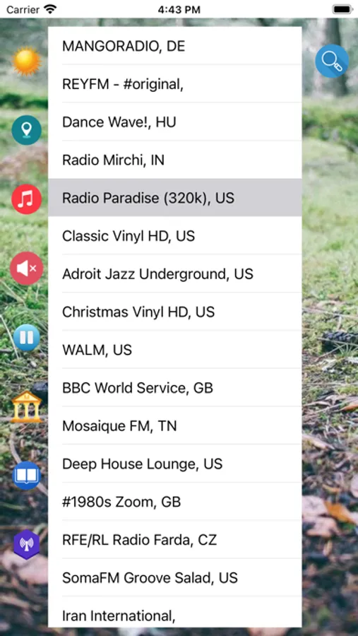 - Radio stations from all over the world (33000 stations) in all languages! You can search by part of the station name or by country code (US, DE etc)