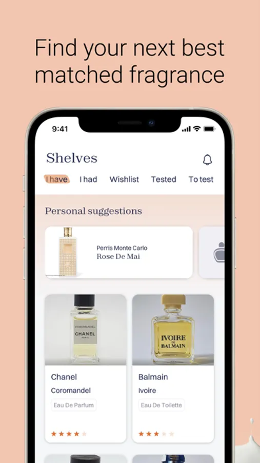 Aromoshelf app allows you to create your perfume wardrobe, capture scent impressions and wisely plan your future perfume purchases. The application provides you with an extensive fragrance catalog and community where you can share your experience and connect with other perfume lovers.