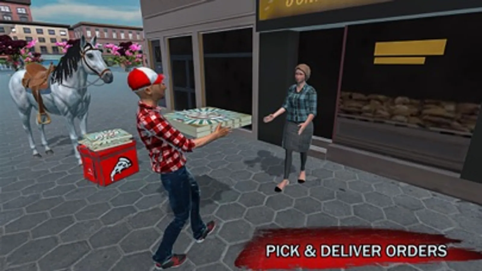 Play this amazing mounted horse rider pizza delivery game, enjoy horse riding in off-road and city environments. Pizza delivery is a first realistic approach in horse riding simulation games. Work as a delivery guy for a fast food restaurant in town. Deliver the yummy pizza to its destination and get a reward. Beautiful town environments with realistic graphics make this game very interesting among other horse simulation games. You have already played van, bike and ATV pizza delivery games but you are looking for some crazy horse riding.