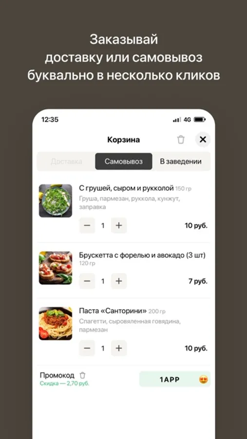 — Быстрый заказ с мгновенным подтверждением через приложение.