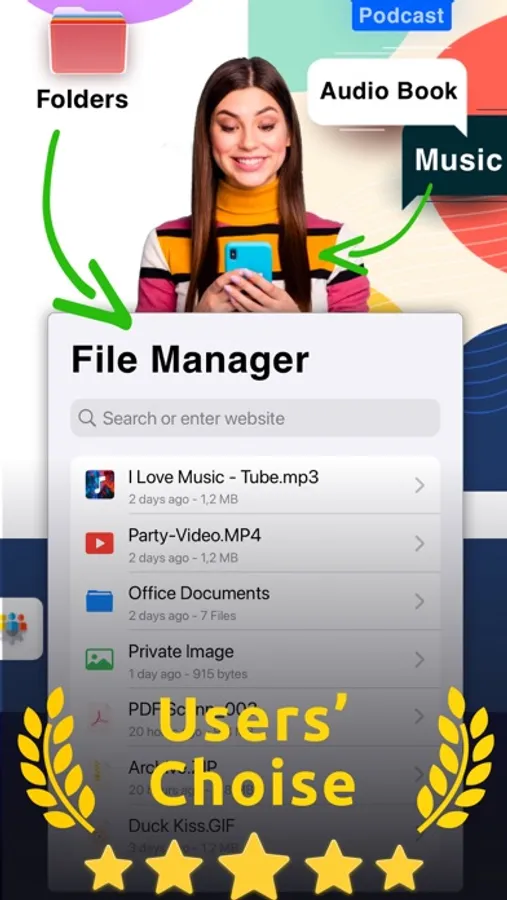 - Powerful file manager to organize your private files.