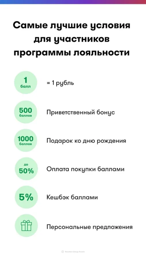 Международный бренд, который с 1965 года объединяет в себе цвет и энергию итальянского стиля. United Colors of Benetton чтит традиции и вместе с тем тонко чувствует последние тенденции городского стиля, от сезона к сезону создавая образы, прекрасно интегрированные в своем времени. Это удобная, универсальная одежда, обладающая естественной элегантностью. Стиль основных коллекций сочетается с выбором материалов, вниманием к деталям и отделке, и во всей своей полноте представляет итальянский подход к умению одеваться.
