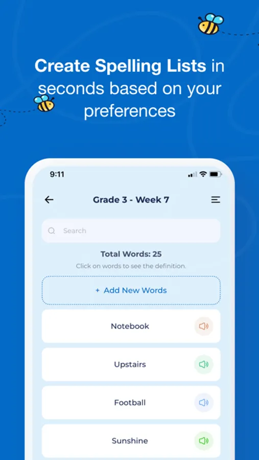 Buzzy Bee is a study companion that helps students learn how to spell and prepare independently for spelling tests. With Buzzy Bee you can create custom spelling lists in less time by using the handy-dandy scan and import features. Plus, with the built-in dictionary, your child never has to guess word pronunciations or definitions. They’ll have fun getting ready for their next spelling test by playing their favorite word games. Let them practice every day with Buzzy Bee to improve their spelling skills! Buzzy Bee is the study companion you’ve been waiting for to help your child improve their vocabulary and ace their next spelling test!