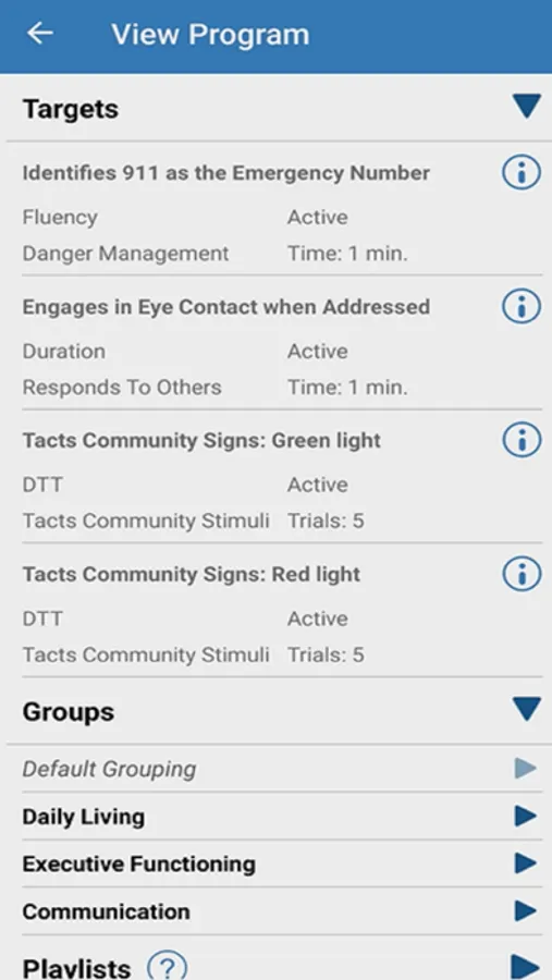 The ATrack Providers DC app is an app designed for tracking ABA Therapy data points to aid in the care of autistic persons. ABA (Applied Behavioral Analysis) Therapy data points are tracked through a structured library of long term Goals and short term Targets that follow standardized ABA principles. ATrack allows real-time and summary/post-session editing of data points for skill acquisition and behavioral performance trend analysis.