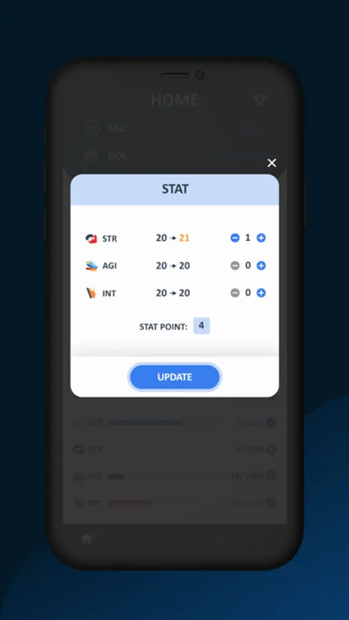 Get Tau for every 500 steps, and use that Tau to strengthen your character.
