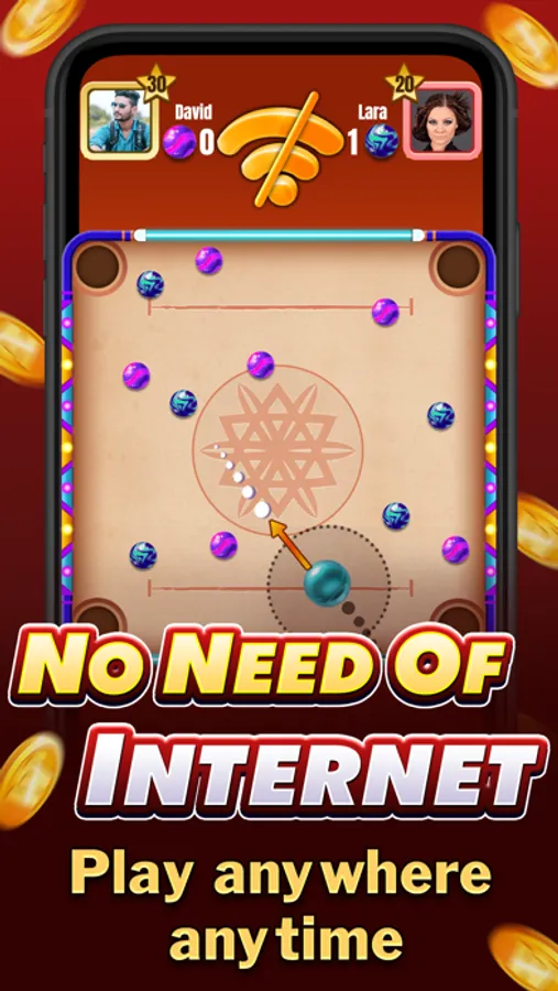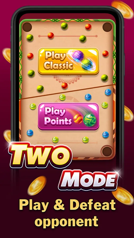 POINTS PLAY : In this mode, you must set the correct angle. Then shoot the Marble into the pocket. Without the queen ball, you can win by hitting 120+ points.