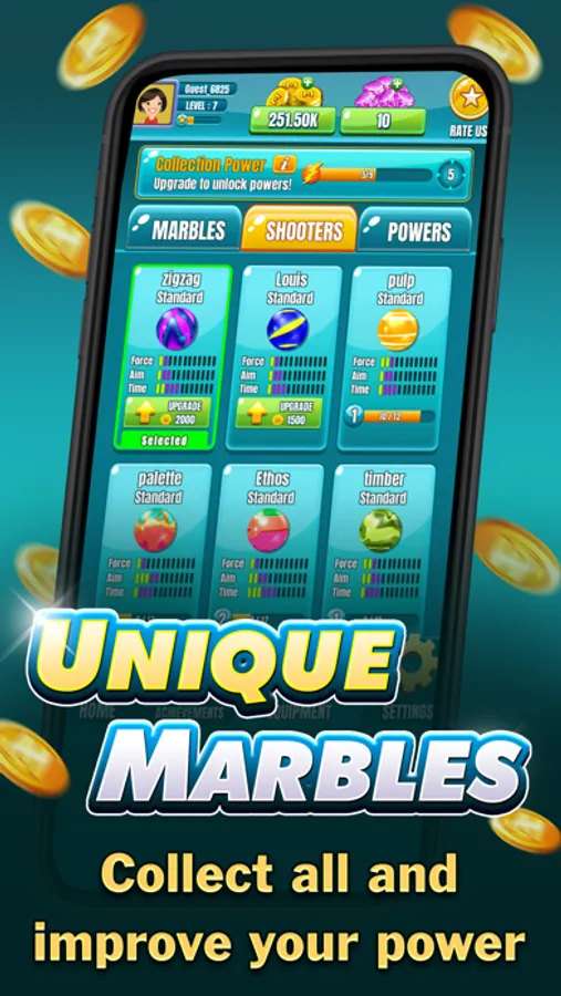+ Collectibles: Play to win chests. Open chests to unlock different marbles and strikers and powers.