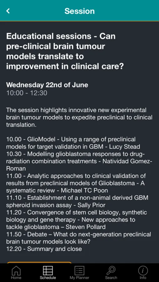 This app is for attendees of the British Neuro-Oncology Society Annual Meeting 2022. The app provides a range of features to enhance the attendee's experience, including the ability to create a personalised itinerary.