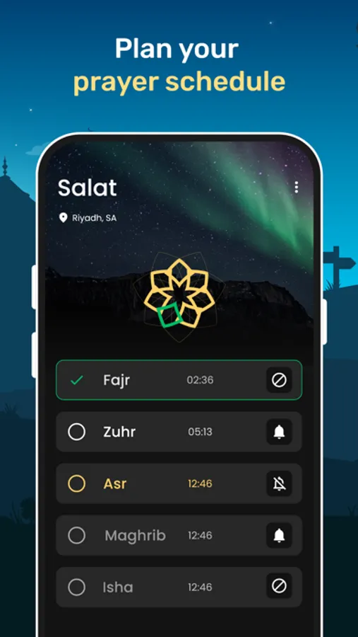 - Receive calls to the upcoming prayers by setting reminder notifications (Athan)