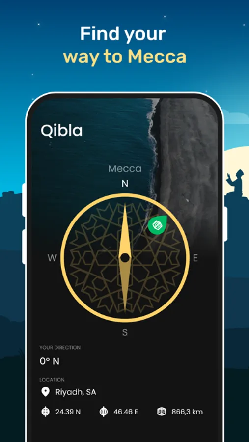 Find your way to Mecca with our app, designed with Muslims in mind and tailored to their needs. Enjoy features such as Salat, Qibla, Tasbih, Shahada, 99 names of Allah, Duas, Quran, greetings, videos, and more during Ramadan and every day!
