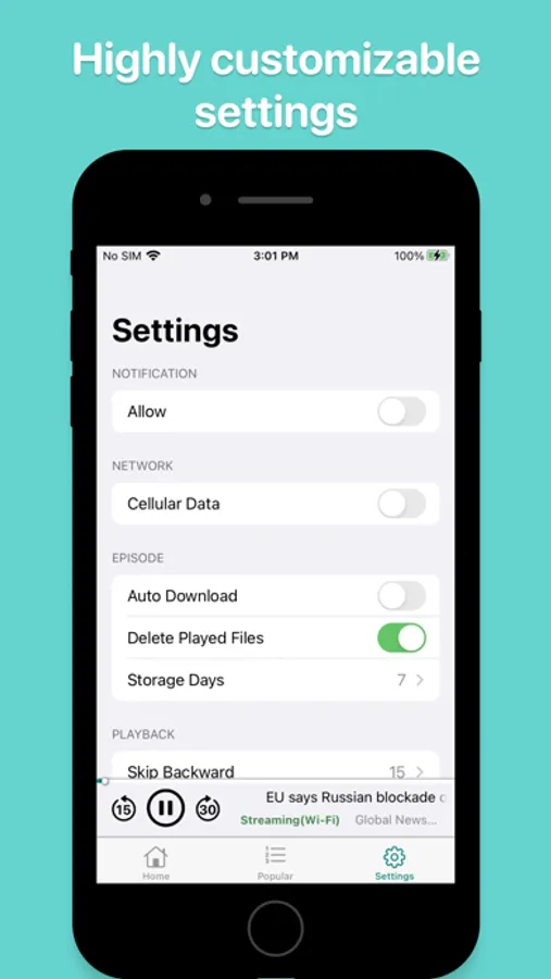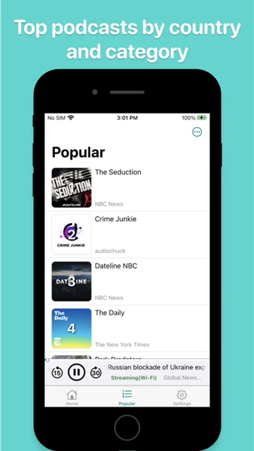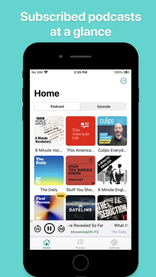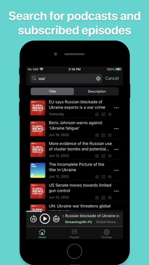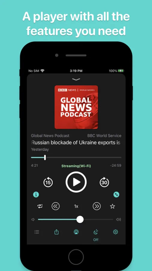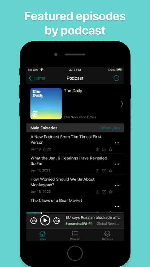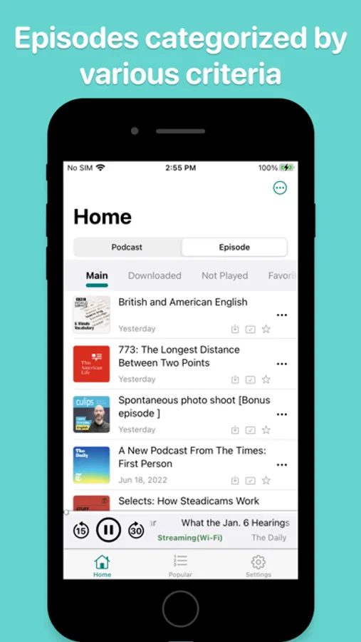 • Lists of episodes (main, downloaded, not played, favorites, etc.)