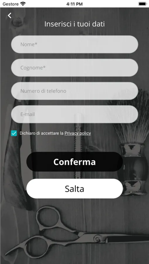 Inserisci i tuoi dati, scegli i trattamenti di cui hai bisogno e prenota con il tuo operatore preferito.
