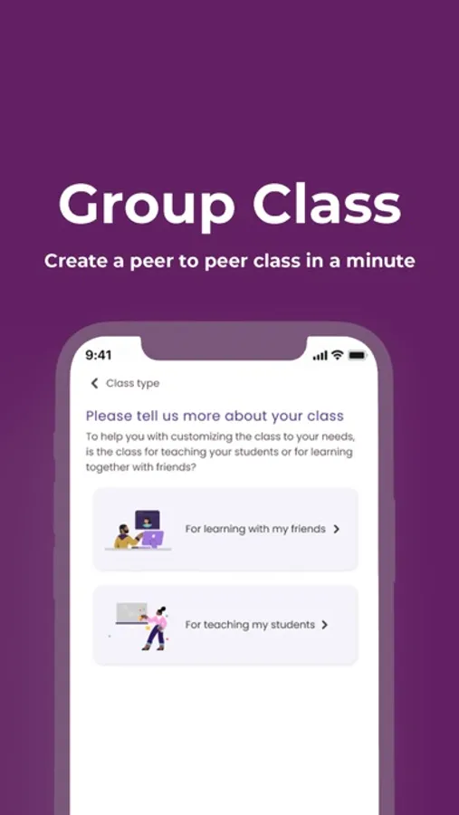 1. Create peer-to-peer learning classes for FREE in less than 30 seconds and start learning with and from like-minded and talented students worldwide. This means you will never learn alone or get bored when studying. Once you create learning groups, we suggest like-minded students with whom you can learn together.