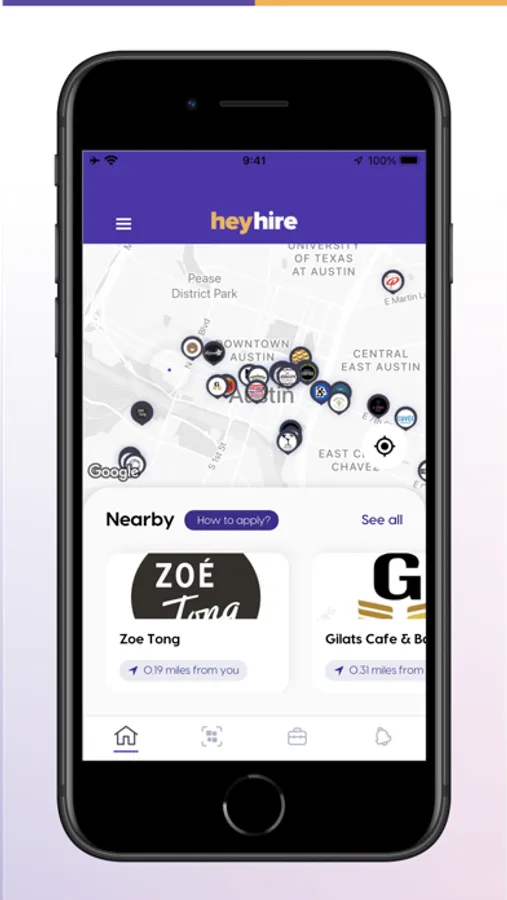 Open your map to find the hiring businesses around you and apply in 2 taps!
