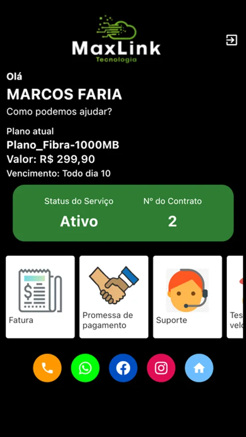 No app da Central do Assinante MaxLink Tecnologia você pode: