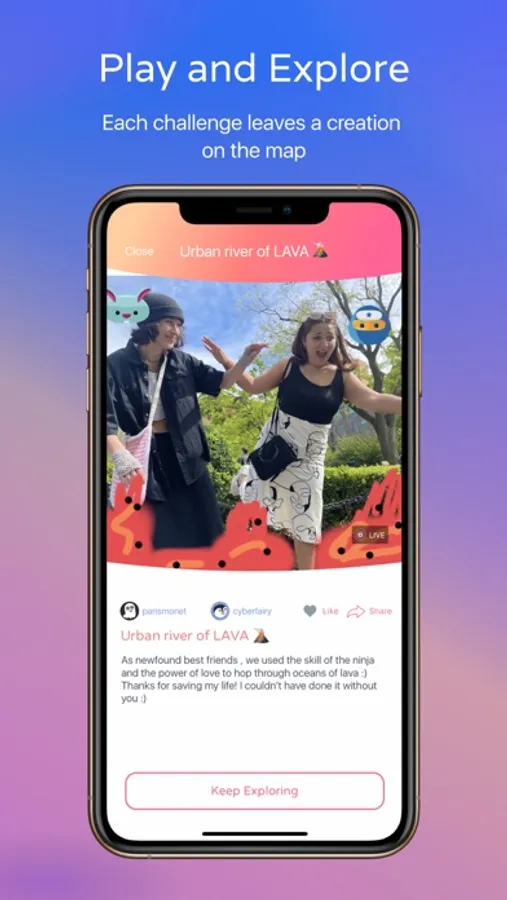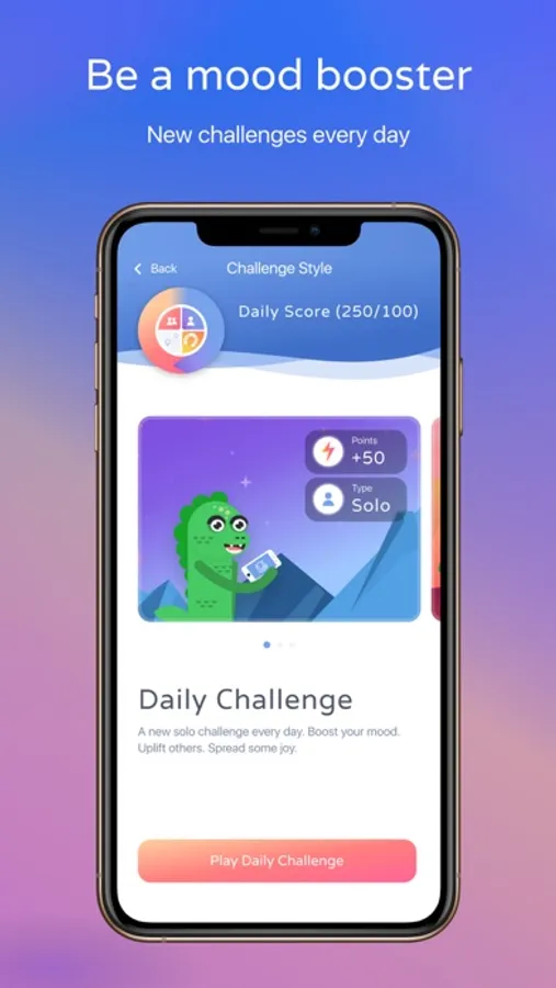 Be a mood booster. Feel the magic of spreading joy by playing real world challenges solo or with friends. From creative to physical to just plain wacky, real world challenges and mood brightening in-person interactions are waiting for you at the tap of a button. Play challenges, explore what other players have done, and design your own challenges for your friends to play.