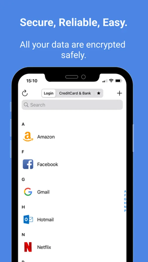 • All your data are encrypted with AES-256 keys in ForPassword app.