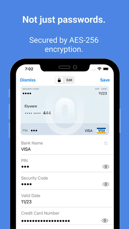 • Store all your passwords, credit cards, bank details, files, photo, video and other private information securely in one place.