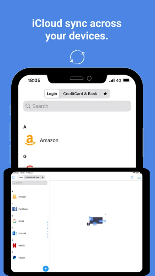 • Using iCloud you can sync & manage all your (login, file...etc) across your iPad, iPhone and iPod.