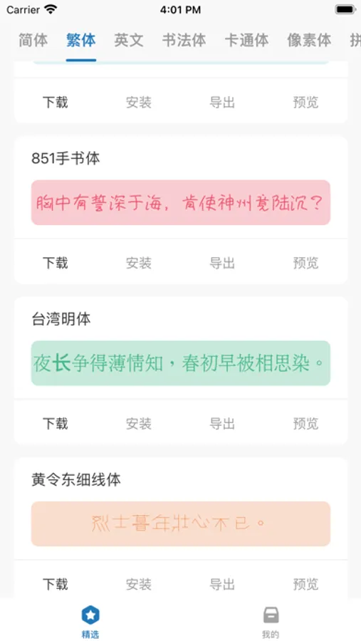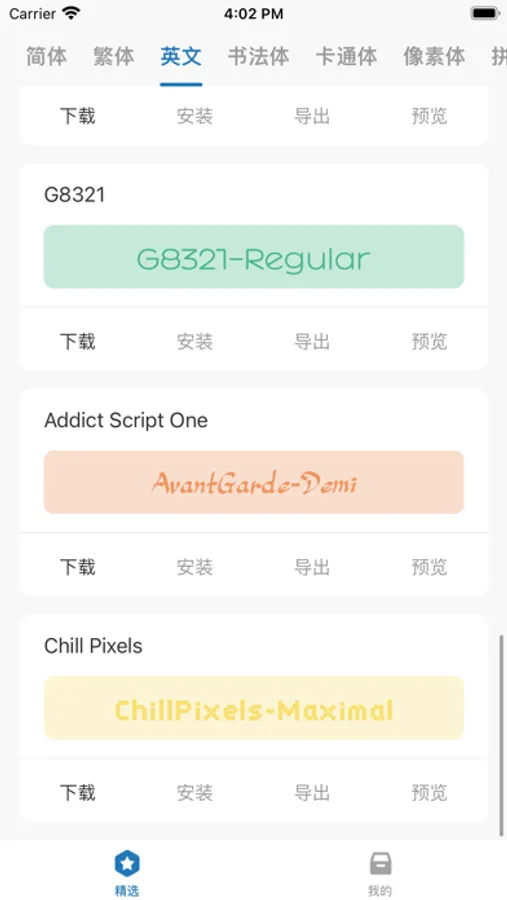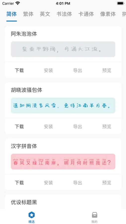 字体大全是一款专业的字体库工具,为字体爱好者们提供种类丰富样式精美的字体。